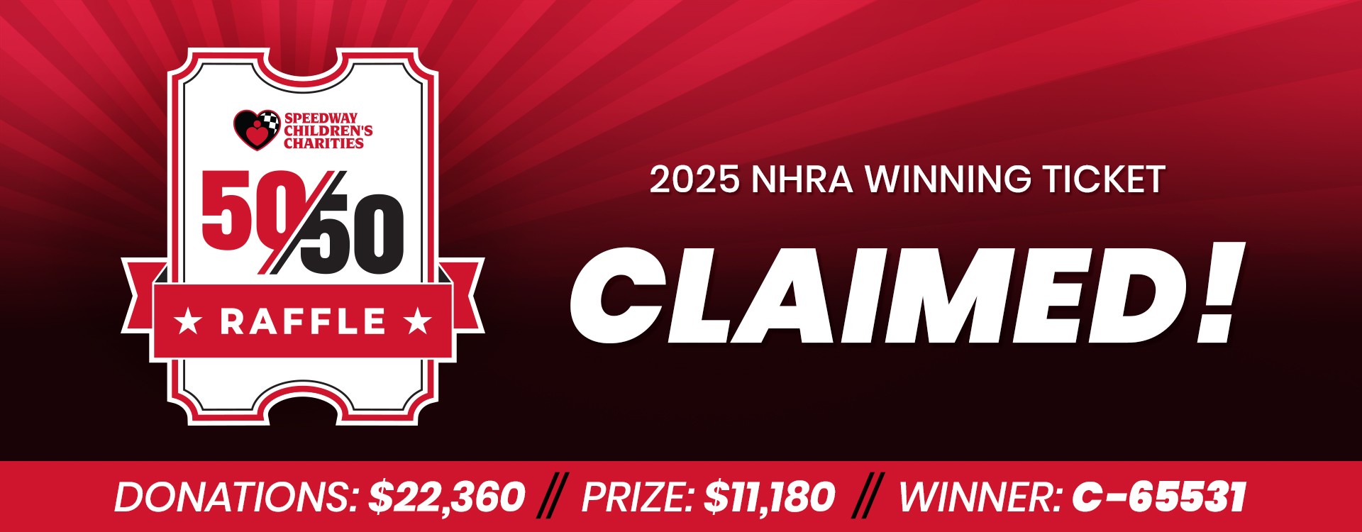 Our generous race fans donated $22,360 for this weekend’s NHRA. One lucky fan has come forward with the winning ticket and has claimed their prize!