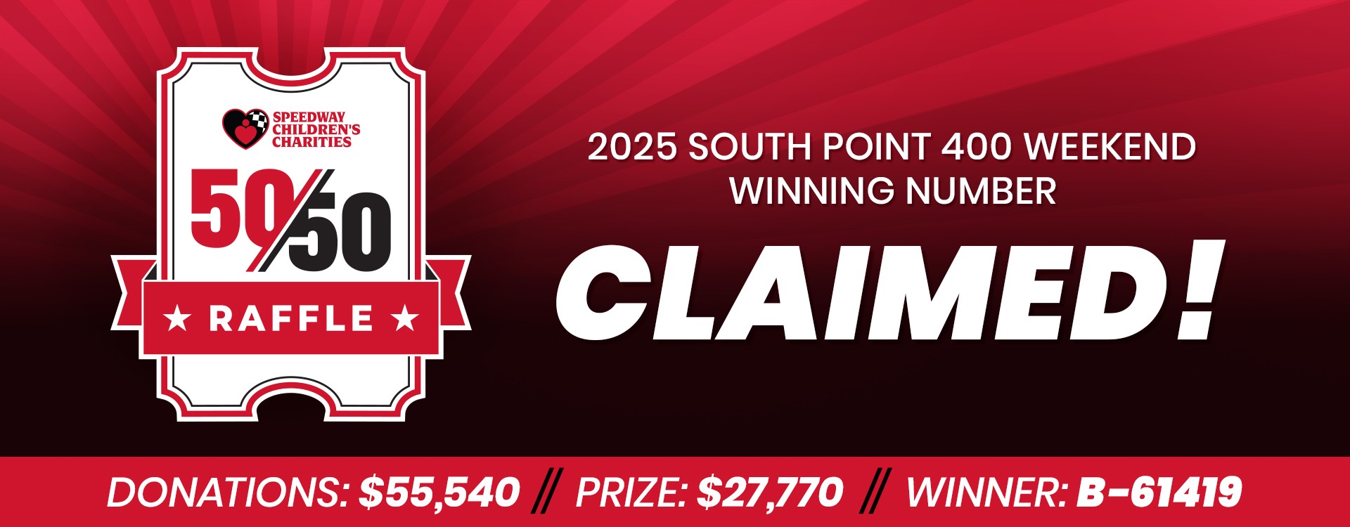 Our generous race fans donated $55,540 for this weekend’s South Point 400. One lucky fan has come forward with the winning ticket and has claimed their prize!